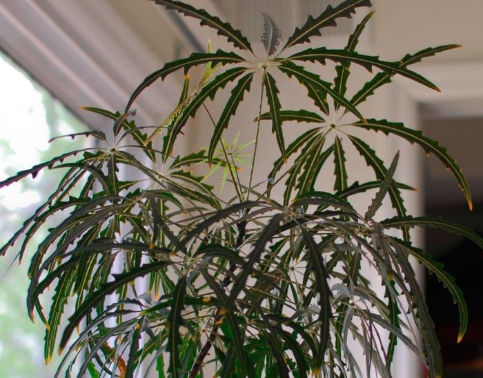 Dizygotheca (Dizygotheca) er ikke en vanlig husplante, så den kan bare finnes hos ivrige blomsteravlere. Dette skyldes at hvis vekstforholdene ikke stemmer overens, dør planten. Til tross for at dizigoteka-blomsten på mange måter ligner på cheflera, trenger den spesiell pleie, i motsetning til sistnevnte. Derfor, før du starter denne planten hjemme, må du gjøre deg kjent med dens preferanser, slik at det senere ikke er noen problemer.