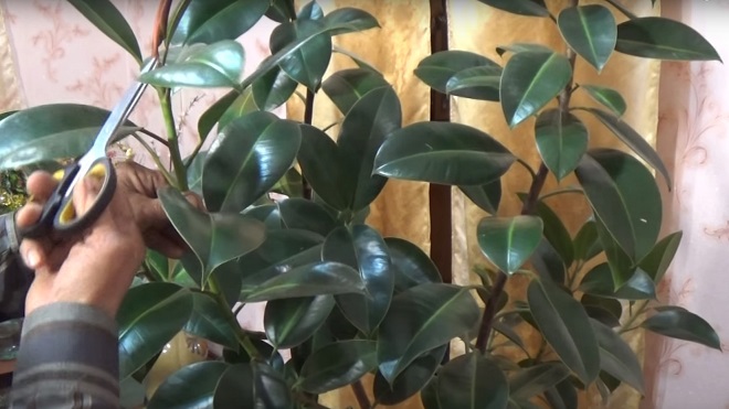 Den raske veksten av ficus må kontrolleres ved regelmessig å kutte av toppen. Dette tiltaket bidrar til å danne en vakker krone og forynge planten.