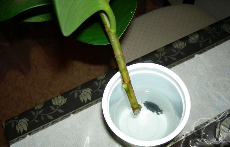 Røttene vil dannes om 2 måneder. En gren med røtter blir kuttet og satt inn i næringsjorden.
