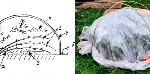 - Gropen er dekket av jord, mulching med torv, kompost eller humus utføres rundt den. Dekk til med folie.