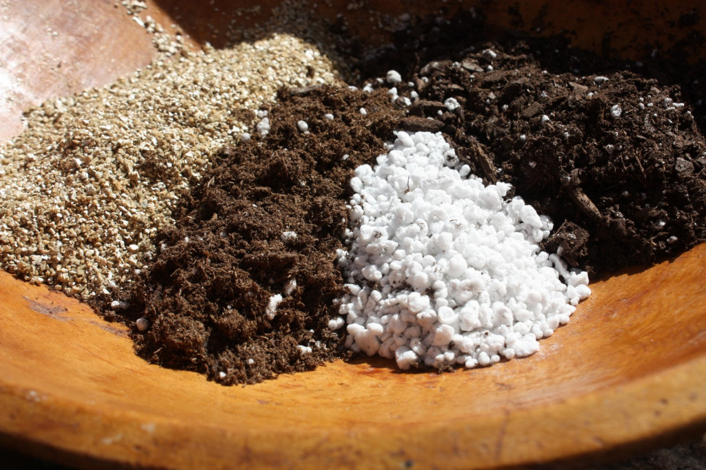 Torv er egnet for middels syre, godt råtnet. Utad ser det ut som en smuldret brunsvart tørr masse. Rød torv som inneholder usplittede biter er ikke egnet. Sanden er grov, ikke industriell, uten leire. I stedet kan du kjøpe vermikulitt i butikken. Når du tilsetter kull, må du sørge for at det ikke kommer noe polyetylenforbrenningsprodukt i potten.