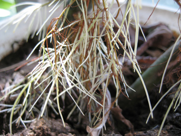 - Hvis råtne områder av røttene blir avslørt, blir de kuttet ut, og seksjonene desinfiseres med knust kull eller soppdrepende middel.