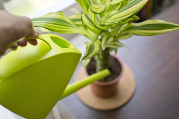 For at dracaena skal blomstre og ikke slippe blomster på forhånd, må du opprettholde intensiv vanning. Jorda i potten skal ikke tørke ut, men du bør ikke oversvømme planten, ellers blir den syk. Det beste du kan gjøre er drenering.