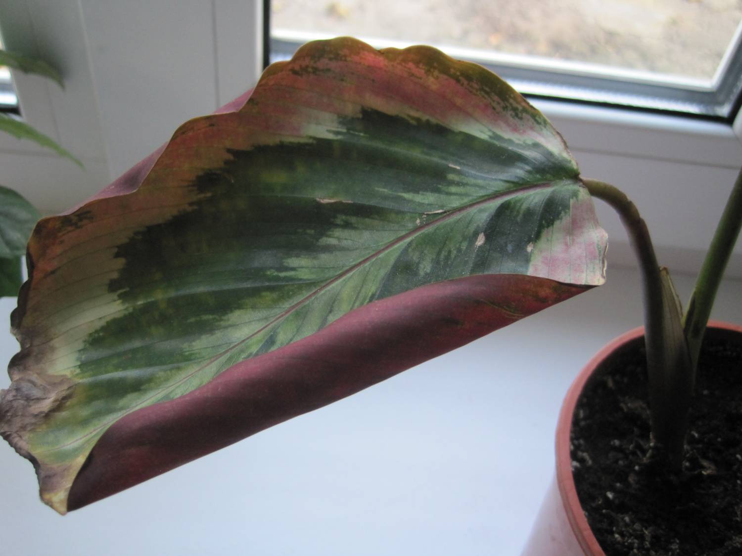 Bleken på bladplatene kan skyldes utilstrekkelig lys. Det er viktig at blomsten får den nødvendige delen av sollys.