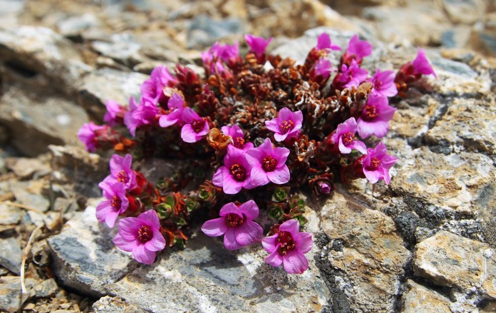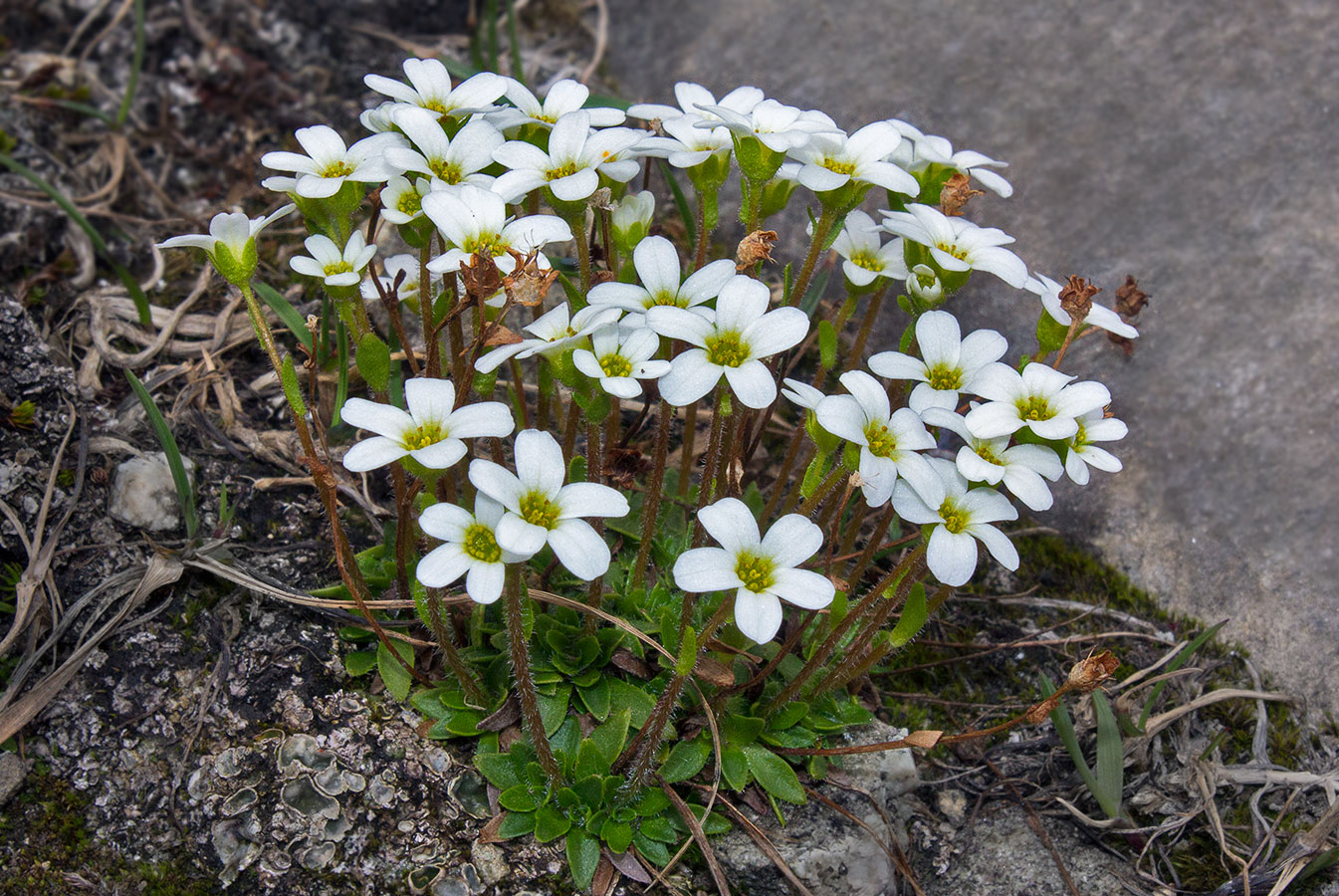 Saksifrage-blomsten med svært varierte arter blir ofte brukt i landskapsdesign.