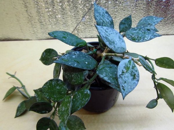 - Hoya lacunosa v. snøhetter - med mørkegrønt løvverk og sølvfargede flekker, vokser opp til 12 cm i lengde og 2 cm i bredde, med snøhvit blomsterstand;