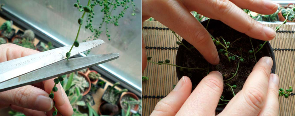 Med stiklinger mener vi små deler av stammen, ca 9 cm lange. Et par nedre blader fjernes fra dem og blir liggende over natten i det fri. I løpet av denne tiden er stammen litt tørket, og den plantes i en spesielt tilberedt sandjordblanding. Det er ønskelig at det ikke er ugress i det. Du kan kontrollere klimaet der borekaksene skal befinne seg, og flytte dem etter behov. Flere stilker er plantet i en gryte. Transplantasjonen gjøres etter å ha rotet.
