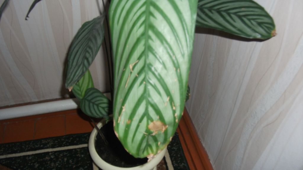 Den vanligste årsaken til blancherende blader er for lav lufttemperatur. Et utkast kan også forårsake et lignende problem. Å flytte avlingskrukken til et mer behagelig sted vil raskt gjenopprette et sunt utseende på planten.