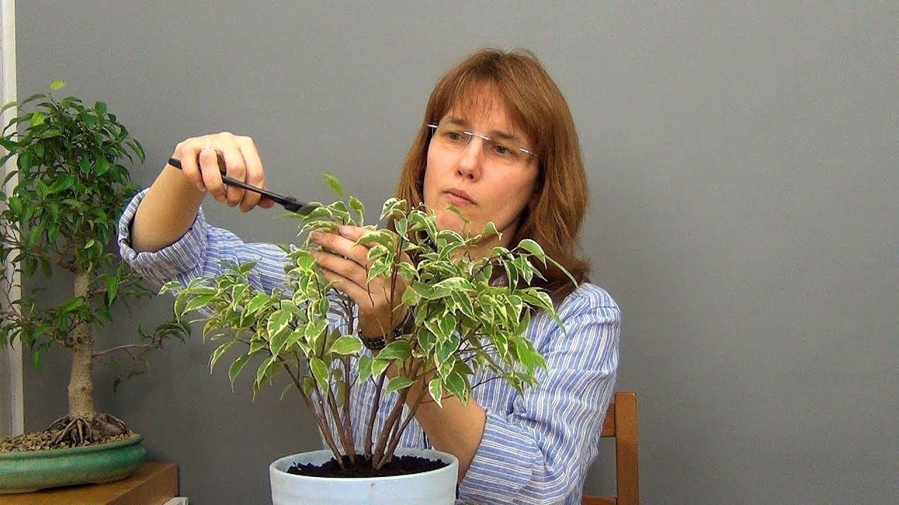 Det er viktig å ikke gå glipp av øyeblikket for å danne sammensetningen, siden ficus vokser veldig raskt.