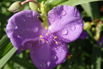 Det er nødvendig å spraye Tradescantia hele året. Fremgangsmåten bidrar til å øke luftfuktigheten og fjerne oppsamlet smuss fra overflaten på arkplatene. I vekstsesongen utføres den hver 2-3 dag, og under hvile - en gang i uken.