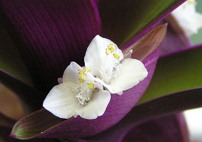 Tradescantia har ikke en uttalt blomstring. Dette er ikke nødvendig, fordi busken er kjent for sine dekorative blader.