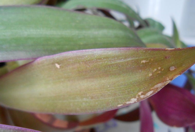 Bare scabbards kan skade Tradescantia. De legger larvene på baksiden av bladene og suger saftene ut av busken. For å ødelegge dem, må du ty til å behandle busken med insektmidler og ikke kaste bort tid på folkemetoder.