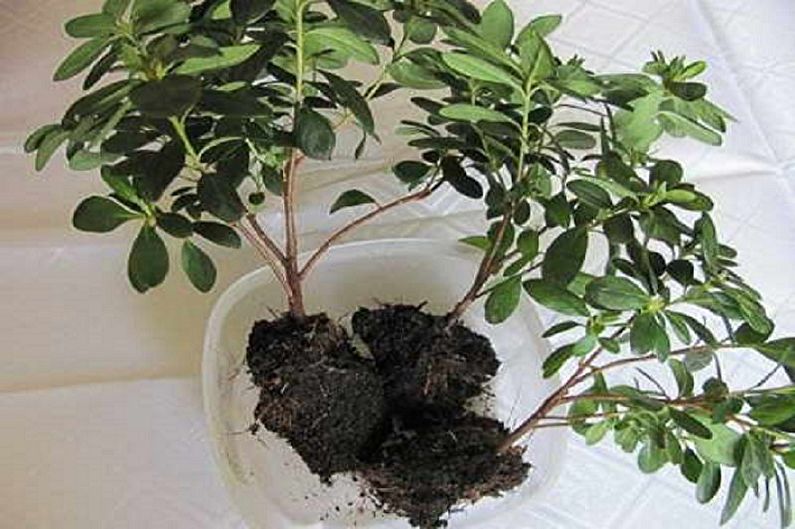 Tørre røtter kuttes, rotsystemet dyppes i vann og plasseres i ny jord. Gryten for transplantasjon er valgt flat. Drenering dannes i bunnen av beholderen. Det er tillatt å skape et surt miljø i en gryte ved å legge dampet furubark på bunnen. Det er bedre å bruke en blanding som er en del av et spesielt substrat.