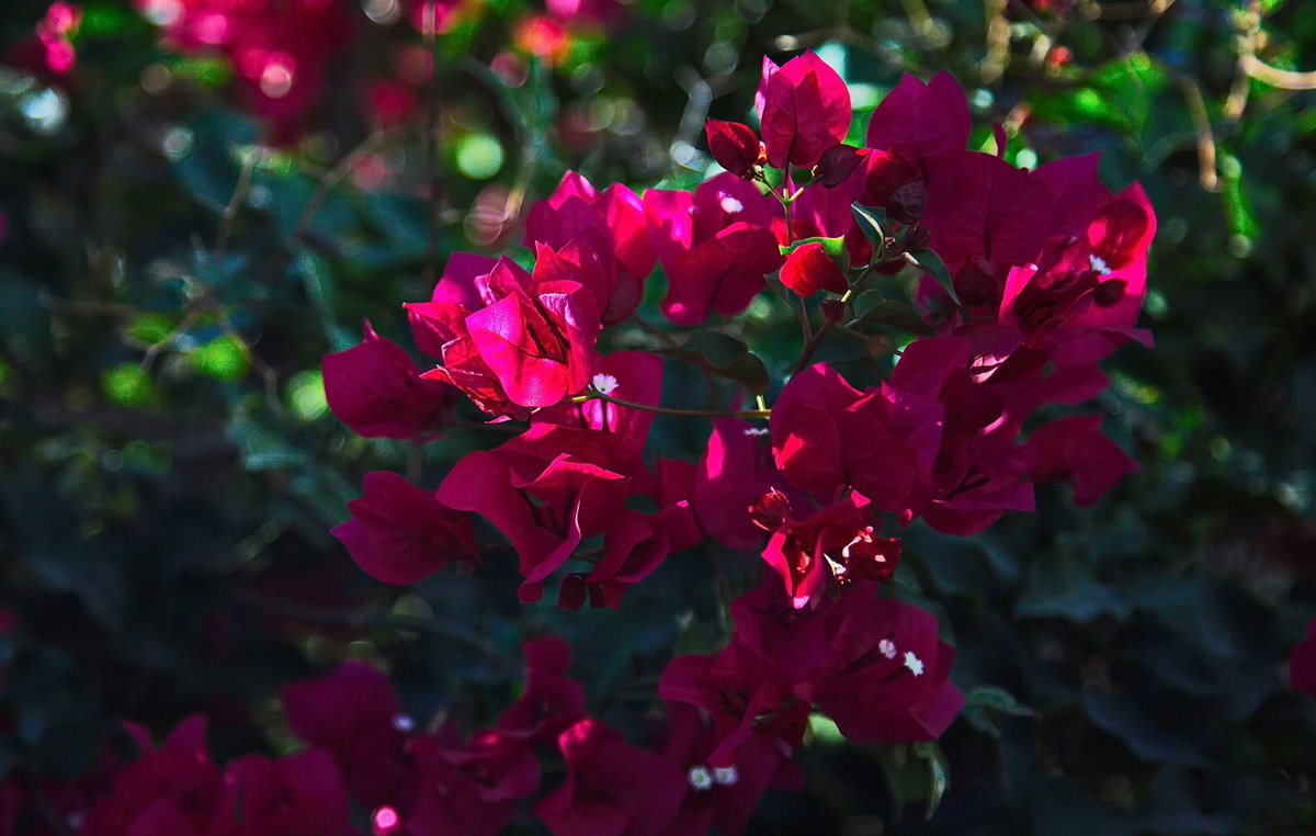 Bougainvillea vil føle seg best på solsiden av huset.Hun trenger direkte sollys i minst 12 timer om dagen. Du trenger ikke å bekymre deg for brannsår - den tropiske beboeren elsker solen. Det viktigste er at det ikke er utkast. Vind og trekk er fiender av den bisarre planten.