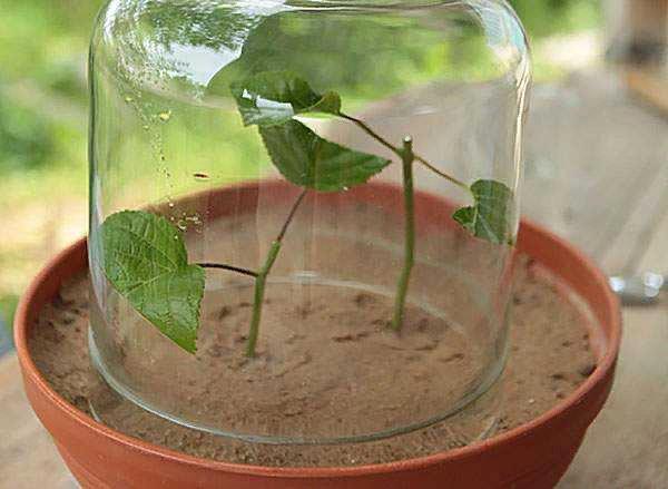Rooting kan ta fra to uker til en måned, hvorpå spirene kan plantes i potter.