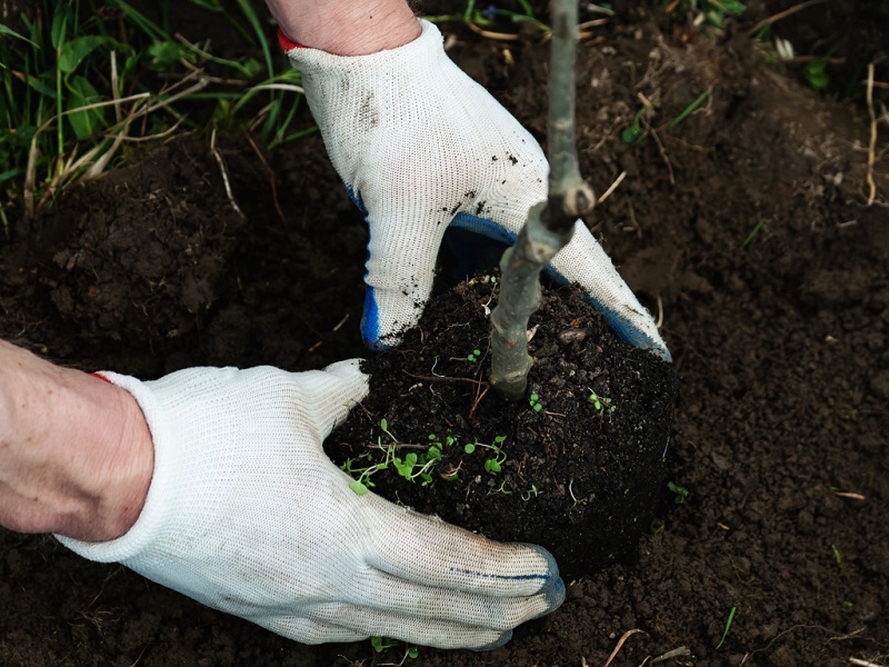 - Fyll hullet med jordunderlag, forsiktig slik at det ikke blir noe tomrom mellom røttene.