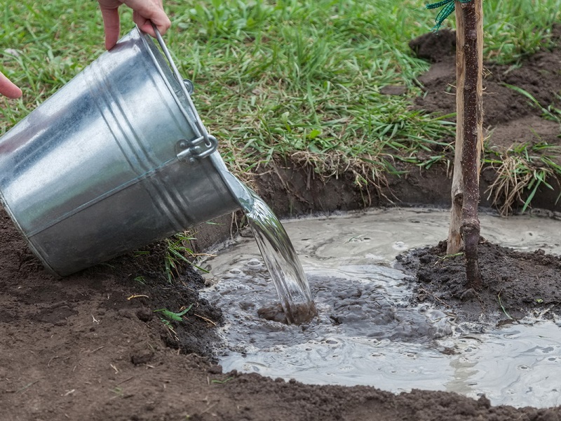 De første 10 dagene må du slutte å vanne.Deretter legger du til 2 bøtter vann under hvert tre etter behov.