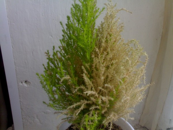 Cypress er også syk. Riktig pleie vil bidra til å bevare de dekorative egenskapene til et grønt kjæledyr. Ellers kan det rett og slett tørke ut.