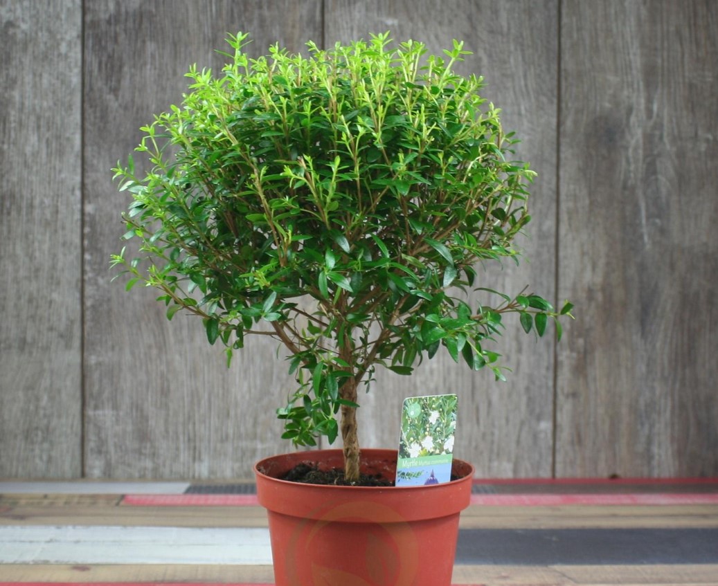Myrtle hjemme vil føle seg komfortabel i en liten gryte. Diameteren skal være tilstrekkelig til å imøtekomme rotsystemet, men ikke stor. Materialet kan være hva som helst, men et myrteltre i en leirgryte vil se mest imponerende ut.