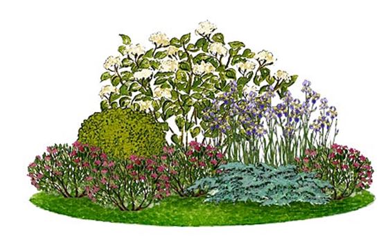 Praktisk anbefaling. Ikke la deg rive med av variasjon. Ofte ser fasjonable nyheter av kompakte busker naturlig ut i komposisjoner plantet i grupper på flere eksemplarer. For en liten hage (opptil 10 mål) anbefales det å gruppere avlinger av samme type i flekker med et areal på 0,5-1,5 m².