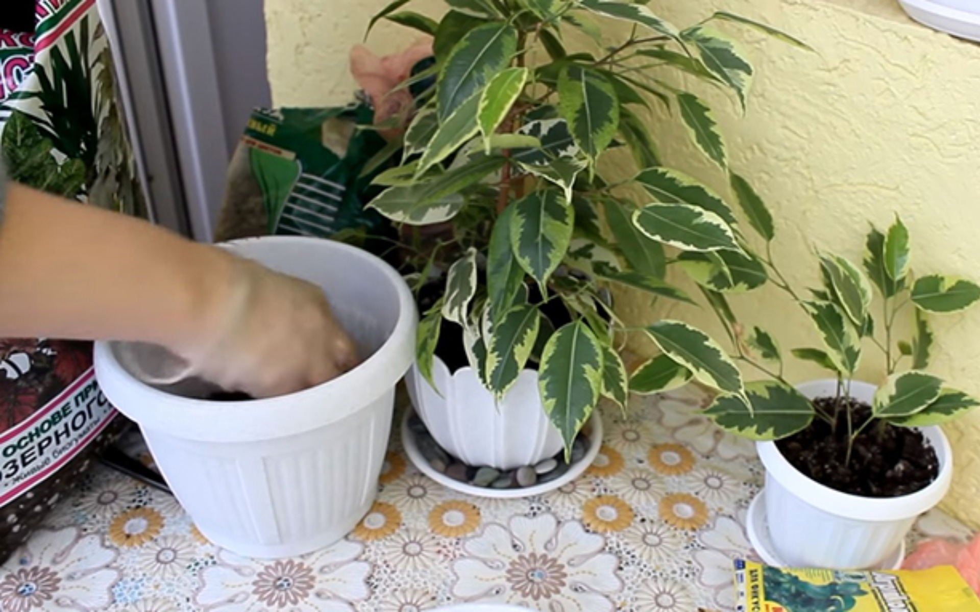 Forberedelse for transplantasjon av ficus Benjamin