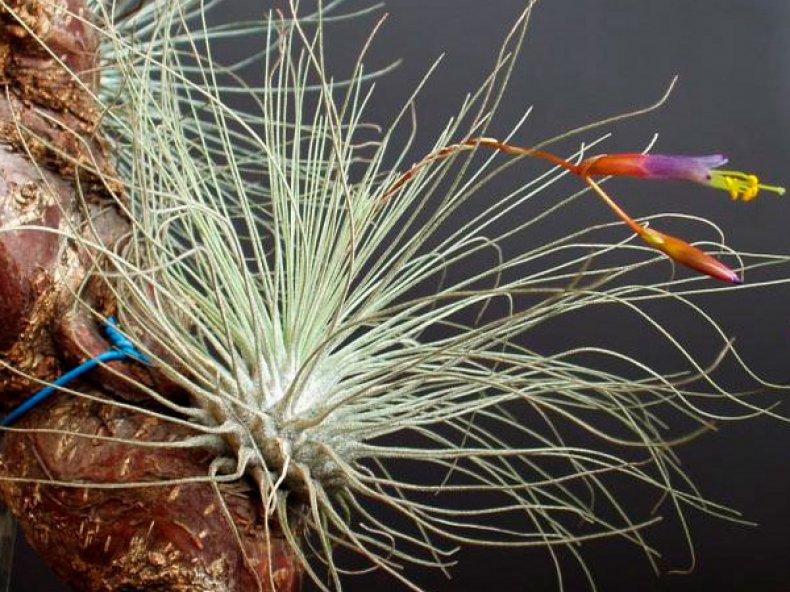 Atmosfærisk tillandsia er en plante uten røtter. En uvanlig eksotisk blomst som ikke trenger en pott fordi den har luftrøtter. Tillandsia er lite krevende å ta vare på, utseendet er så uvanlig og originalt at enhver blomsterelsker vil like det.
