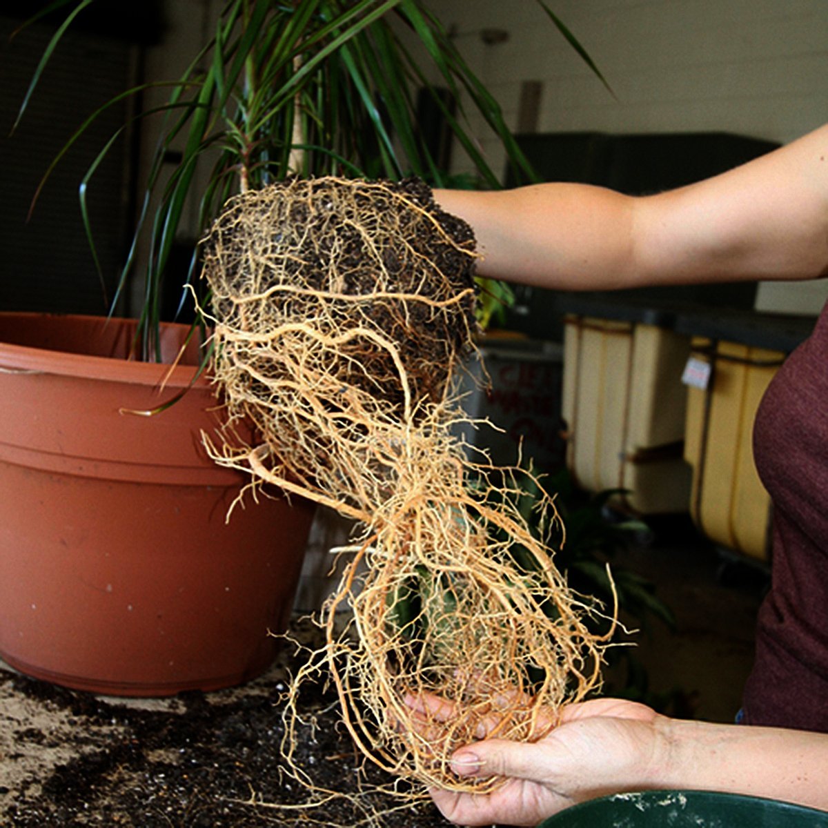 Dracaena rotbeskjæring gjøres bare hvis det er absolutt nødvendig. Årsaken til dette kan være dannelsen av rotrot eller sterk vekst av røttene. Helsen og utseendet til planten avhenger av tilstanden til rotsystemet.