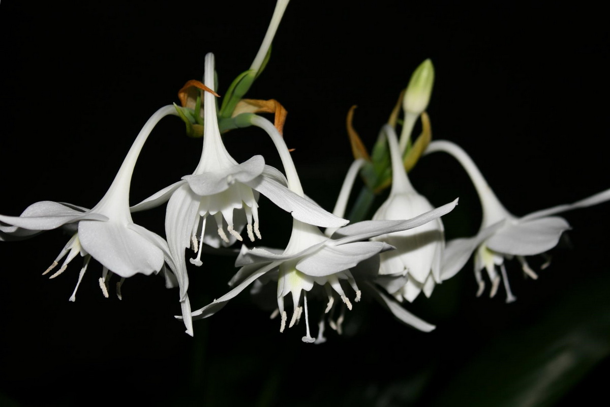 De fleste av artene og sortene blomstrer fra august til september, men med god stell, andre gang i februar-mars. Blomsten ligner påskeliljen veldig utseende. Pæren driver ut en lang (opptil 80 cm) pedunkel. På slutten kan fra 3 til 10 store hvite blomster med en diameter på 10-12 cm samles i vanlig blomsterstand. Ulike varianter varierer i størrelse og nyanse på staminatfilamenter (fra grønt til gult). Aromaen er veldig hyggelig - jasmin-sitron. Etter blomstring varer hver corolla opptil 10 dager. Ved pollinering hentes frøkasser fra blomster.