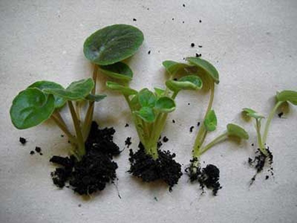 Ved hjelp av en blomst kan du dyrke deg en annen fiolett. For å gjøre dette må du kutte av blomsten sammen med bladet under den. Legg den deretter i rotmaskinen og dekk med oljeduk.