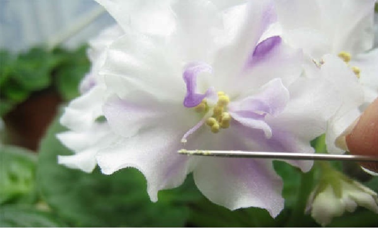 Pollinering av fioler hjemme ved bruk av dyreteknikken skjer ved å berøre en blomst til en annen.