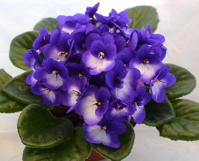 Innendørs fiolett kommer i en rekke farger og nyanser - fra hvitt til rødt, fra blått til lilla. Den fiolettblå ser spesielt vakker ut. I tillegg til et variert utvalg av farger, varierer saintpaulia-varianter i form av blomsterstand og graden av frotté. Det er semi-doble og doble varianter av fioler. Bladene kan også glede eieren med forskjellige former og farger (fra lysegrønn til mørkegrønn).