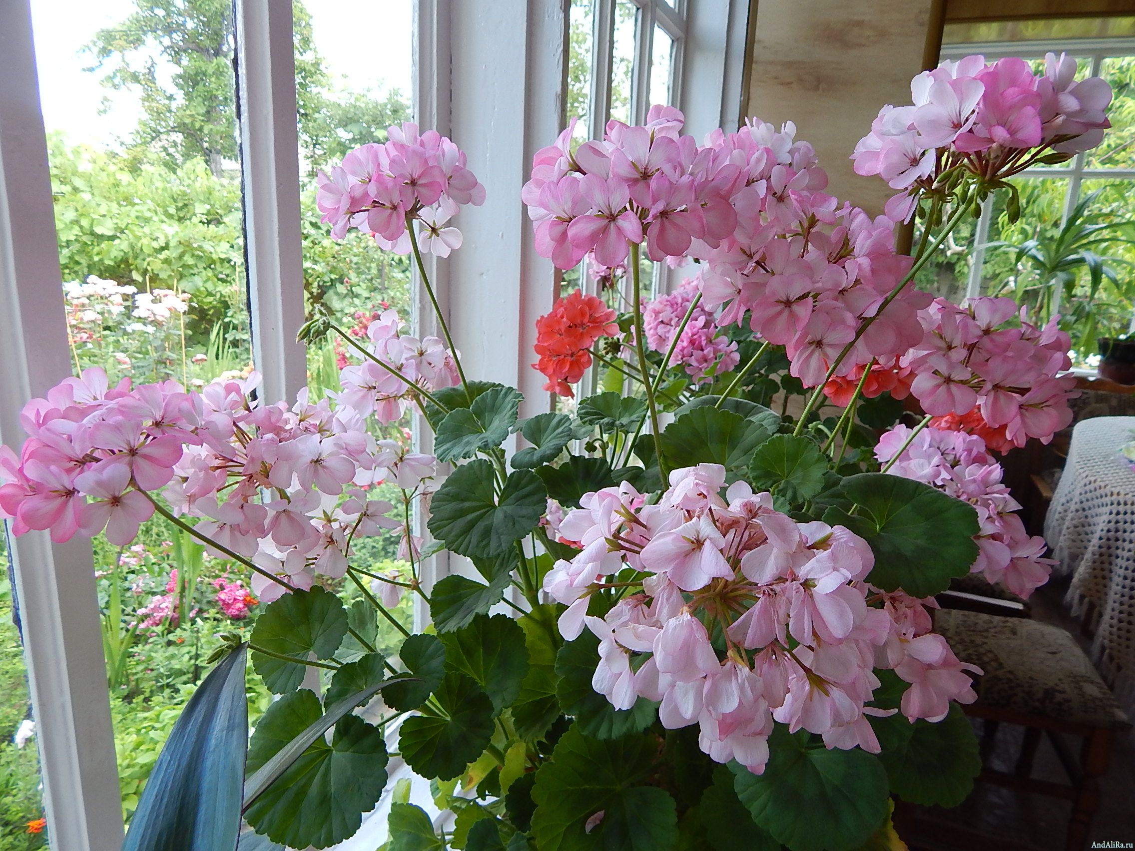 Høy kvalitet på pleie av pelargoner sørger for lys og lang blomstring.