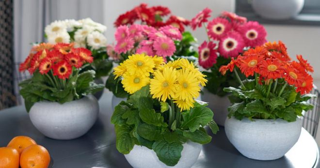 Etter å ha studert emnet hvordan du skal ta vare på en gerbera, vil det være lett å dyrke den. For at busken skal bli en ekte interiørdekorasjon, anbefales det å plante planten i potter av samme skygge som blomsterstandene på stilkene.