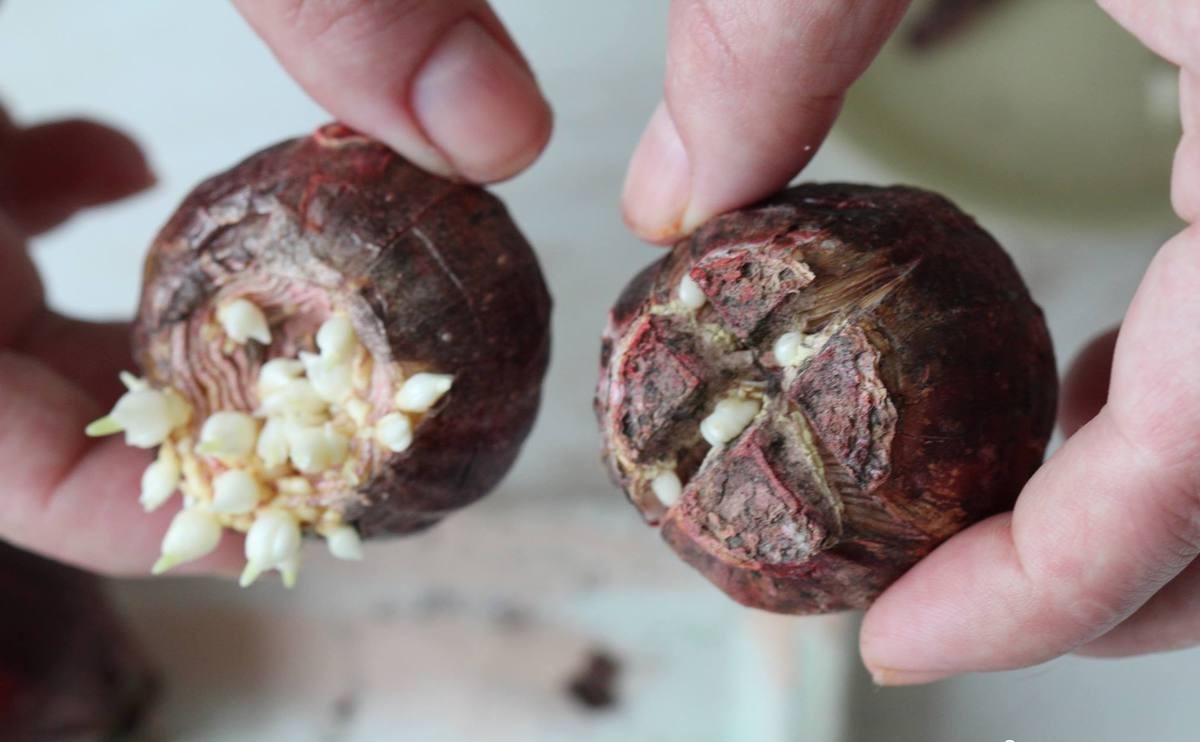 I perioden med aktiv vekst og utvikling er moderens pære gjengrodd av barn. Etter blomstring løsner de seg lett, så kan de plantes separat. Hvis de holder godt fast, er det bedre å dyrke mors pære med barna. Det blir mye lettere å skille dem neste år.