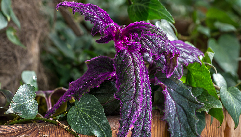 Ginura er en blomst fra Asia og Afrika, tilhører den mange Asteraceae (Asteraceae) familien. De unge stilkene vokser rett opp og faller deretter under egen vekt. Det er lett å gi dem ønsket form, som brukes når du lager kunstneriske hagekomposisjoner - buer, pergolaer etc. De firkantede stilkene strekker seg opp til 1 m i lengden. Bladens pubescens kan være lilla, lilla, så vel som lilla og fiolett.