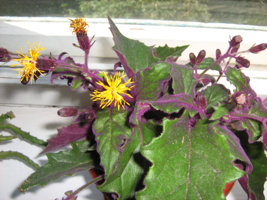 Ginura blomst - stell, blomstrende kurv, lilla og broket