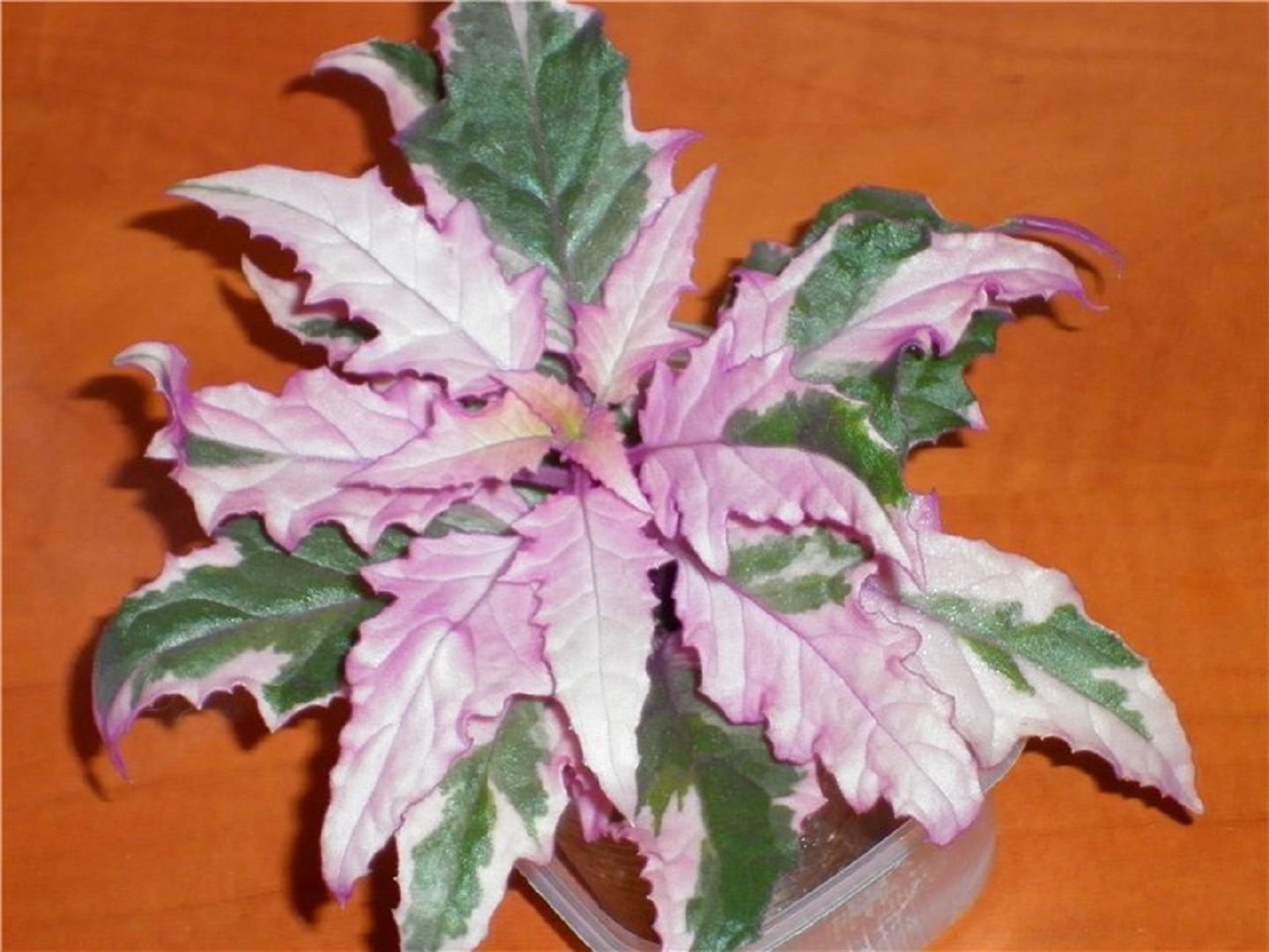 Denne skiller seg fra alle andre varianter i løvfargen. Unge blader på skuddspissen har en delikat lysrosa farge som får mørkegrønne flekker når de blir eldre. Bladene ved røttene blir nesten helt mørkegrønne med en rosa kant.