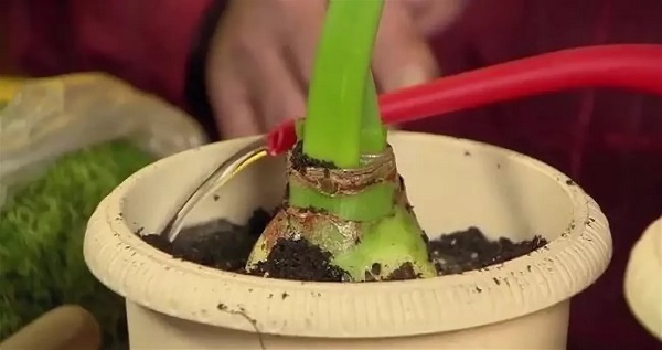 Kvaliteten på jordfuktighet avhenger også av plantenes utviklingstid: mens den ikke blomstrer, blir den sjelden vannet i små porsjoner. Omsorg for hippeastrum begynner etter en sovende periode, når planten har gitt ut den første bladpilen. Vanligvis skjer oppvåkning i januar.