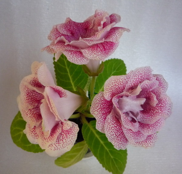 - rosa gloxinia Fortellingen i midten er farget med en rød farge, den lysere halsen er strødd med mørke flekker;