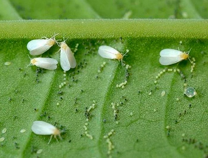 Whitefly - hvite skadedyr, ofte mate av saft av blader og stilker, etterlater avfallsprodukter som negativt påvirker fotosyntese. Bladene begynner å råtne, knoppene er ikke bundet. Effektive måter å drepe hvite fluer hjemme er Vertimek KE, Aktellik KE, Admiral, Kinmix, Oberon.