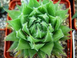 Haworthia er en flerårig saftig. En rot stamme som vokser ca 8 cm, vokser fra roten av kjøttfulle blader med skarpe ender. De kjøttfulle mørkegrønne bladene er vannige, noe som gjør at planten kan klare seg uten vann i lang tid.