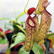 Dette er en av de mest lunefulle typene nepentes, som trenger hyppig gjødsling med mineralgjødsel. Den voksne planten har en tynn urteaktig stamme 60-70 cm høy. Blomstringene er store, oransjerøde.