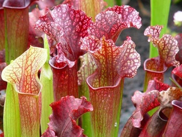 Sarracenia er navnet på en flerårig, rhizom, urteaktig plante. Den tilhører de største kjøttetende plantene. Bladene under er skjellete.