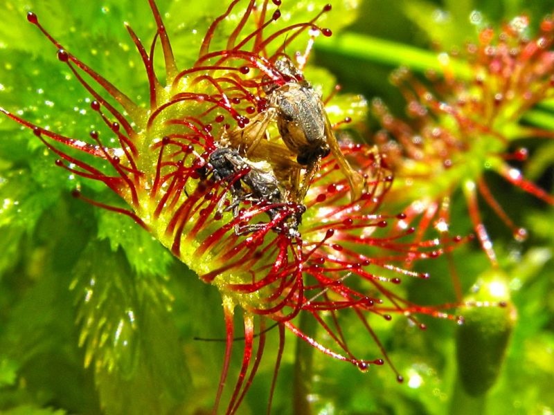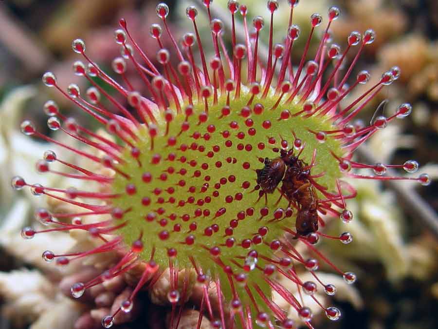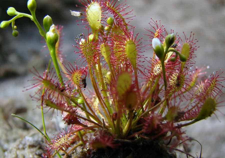 Takket være de modifiserte bladene med villi utstyrt med kjertler, har sundews lært å fange byttedyr og fordøye det ved hjelp av enzymer og organiske syrer fra flimmerhårene.