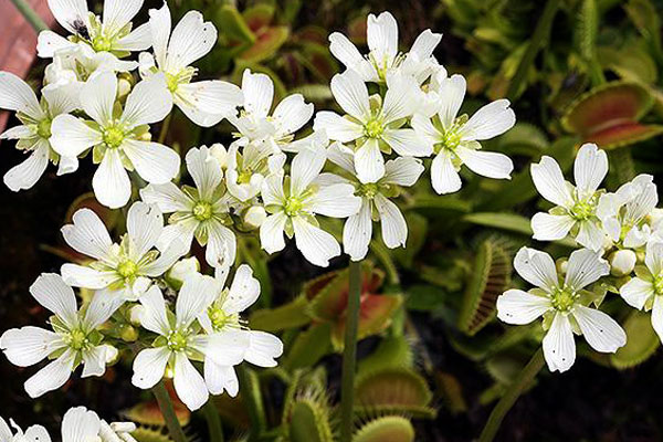 På våren eller forsommeren begynner Dionea å blomstre, først etter at det vises feller. Du kan pollinere planten manuelt, så kan du få frøene som er nødvendige for reproduksjon. Det vil ta omtrent en måned før små esker dannes.