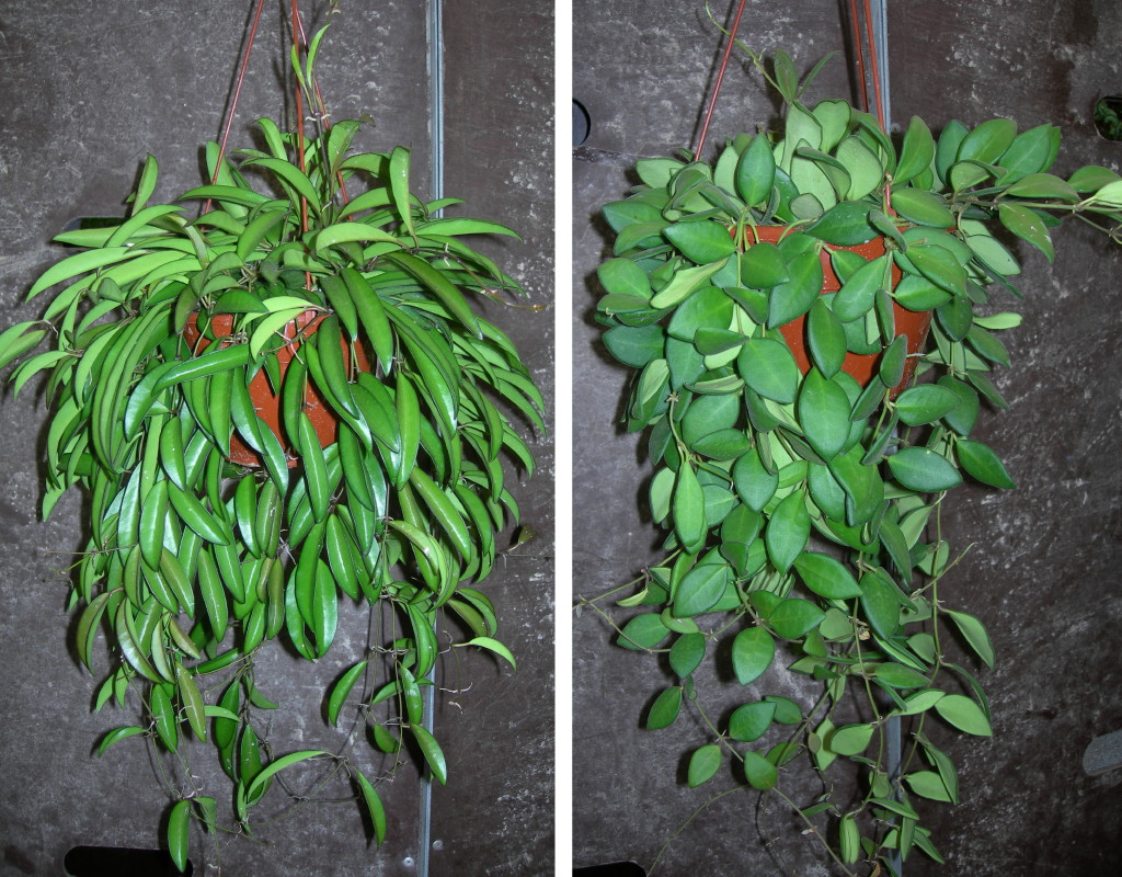- kjøttfull - den vanligste hoyaen blant blomsteravlere. Bladene er blanke, ofte flekkete. Stor og veldig kjøttfull.