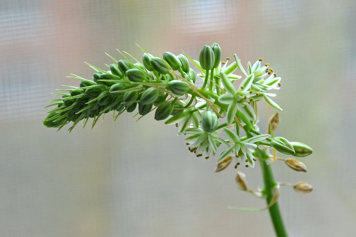 Selv om blomstene er små i utseende og bleke i fargen, kan de fremdeles se veldig bra ut. Resten av tiden er løken en rosett av saftige lyse grønne lange blader som vokser raskt, skaper mye grønt, og en rosett blir dannet av pæren. Pæren i seg selv ser ganske original ut: dekket med hvitgrønne vekter, den stikker ut av bakken og blir gradvis en ball, dette gir planten litt eksotisme.
