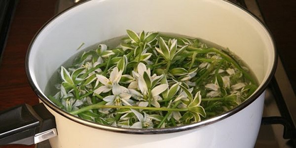 Et avkok av løkskallet tilberedes ved infusjonsmetoden. Skallet som er igjen etter løkstransplantasjonen knuses, helles i et glass vann og får koke. Så insisterer de i 4 timer og filtrerer.