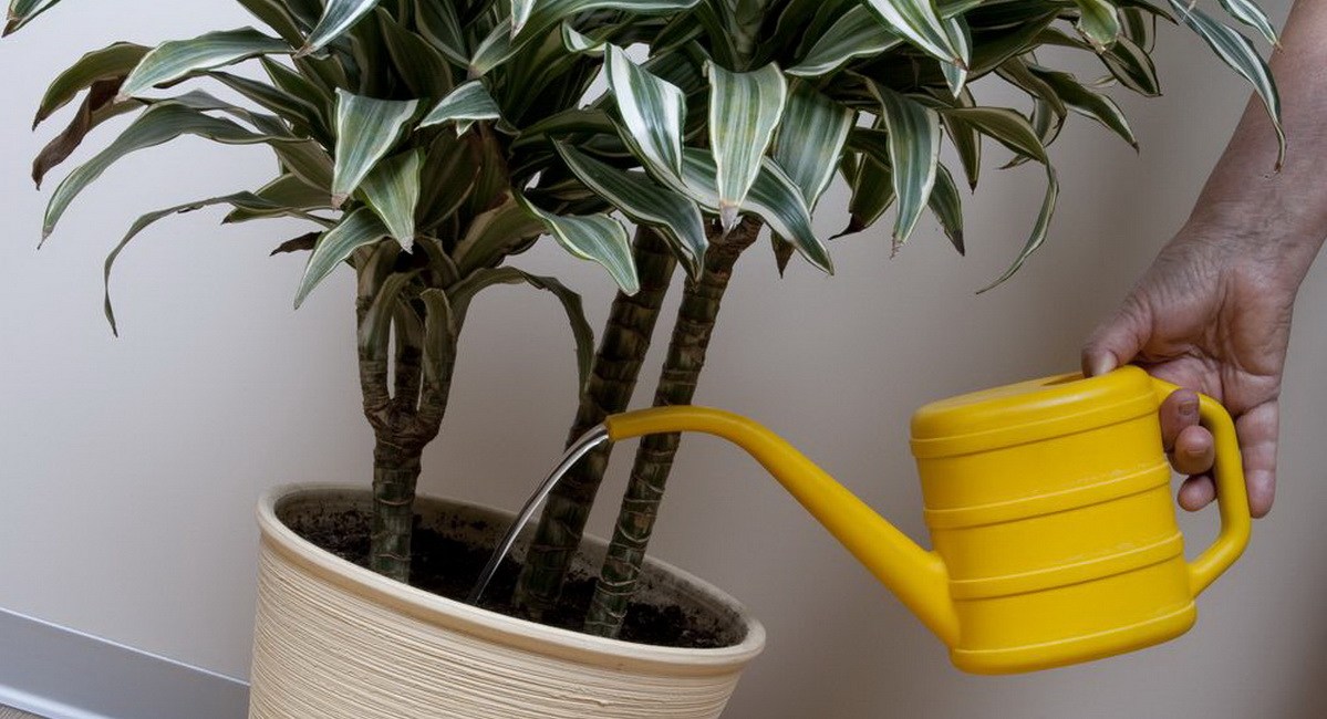 - For vanning, ta bare avgjort vann eller en løsning med tilsetning av gjødsel. Dracaena vannes bare hvis jorden i potten tørker ut minst tre til fire centimeter.