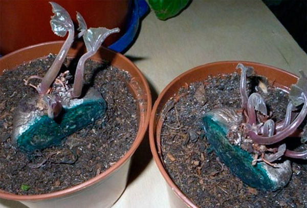 Beholderen er fylt med et underlag av sand, torv og bladjord (henholdsvis 1: 2: 4). Frøplanter plantes i jordblandingen, og dryss knuter fullstendig med den. Den første fôringen av frøplanter utføres på en uke, og tar blomstergjødsel i en svak konsentrasjon ("Tsvetovit", "Ferovit", "Kemira Lux").
